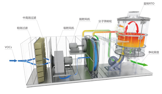 1、分子篩轉(zhuǎn)輪+RTO組合工藝特點(diǎn):