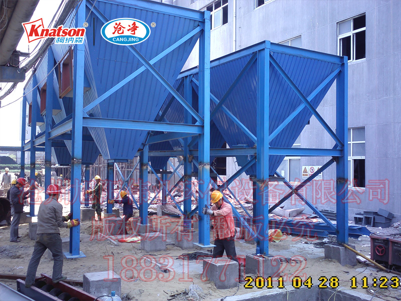 【2臺HFMC-1200型噴漿造粒復(fù)合肥布袋除塵器安裝過程圖】