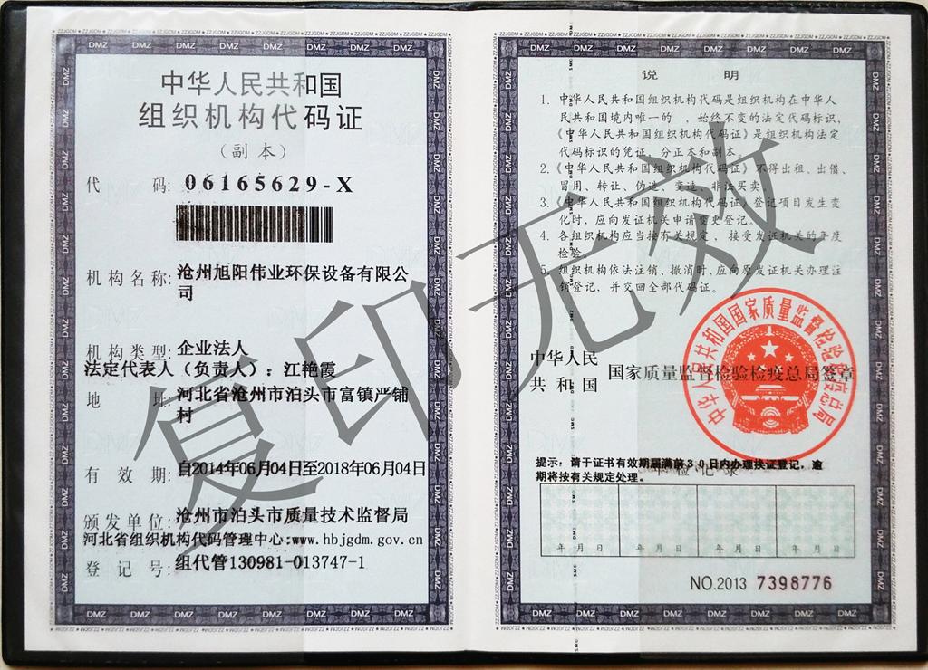 企業(yè)代碼證-滄州旭陽偉業(yè)環(huán)保設(shè)備有限公司