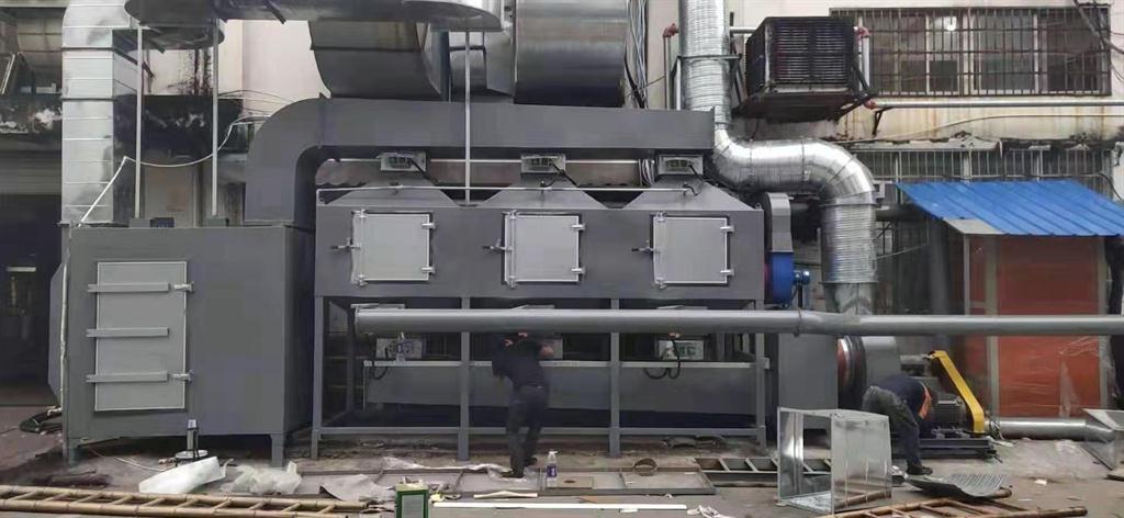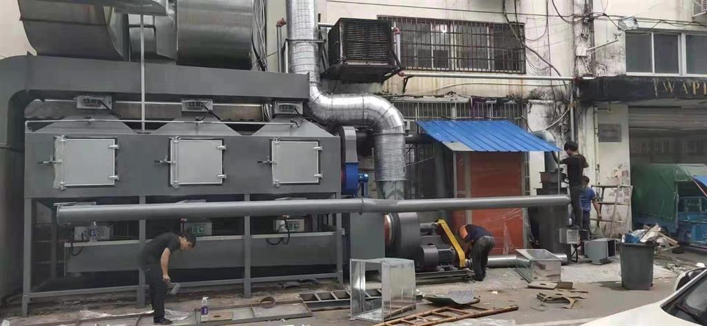 活性炭吸附濃縮催化燃燒(RCO)系統(tǒng)根據(jù)吸附(效率高)和催化燃燒(節(jié)能)兩個基本原理設(shè)計,采用雙氣路連續(xù)工作,一個催化燃燒室,兩個吸附床交替使用。先將有機廢氣用活性炭吸附,當(dāng)快達(dá)到飽和時停止吸附,然后用熱氣流將有機物從活性炭上脫附下來使活性炭重生;脫附下來的有機物已濃縮(濃度較原來提高幾十倍)并送往催化燃燒室催化燃燒成二氧化碳及水蒸汽排出。當(dāng)有機廢氣的濃度達(dá)到2000mg/m³以上時,有機廢氣在催化床可維持自燃,不用外加熱。燃燒后的尾氣一部分排入大氣,大部分被送往吸附床,用于活性炭重生。這樣可滿足燃燒和吸附所需的熱能,達(dá)到節(jié)能的目的。重生后的可進(jìn)入下次吸附;在脫附時,凈化操作可用另一個吸附床進(jìn)行,既適合于連續(xù)操作,也適合于間續(xù)操作。